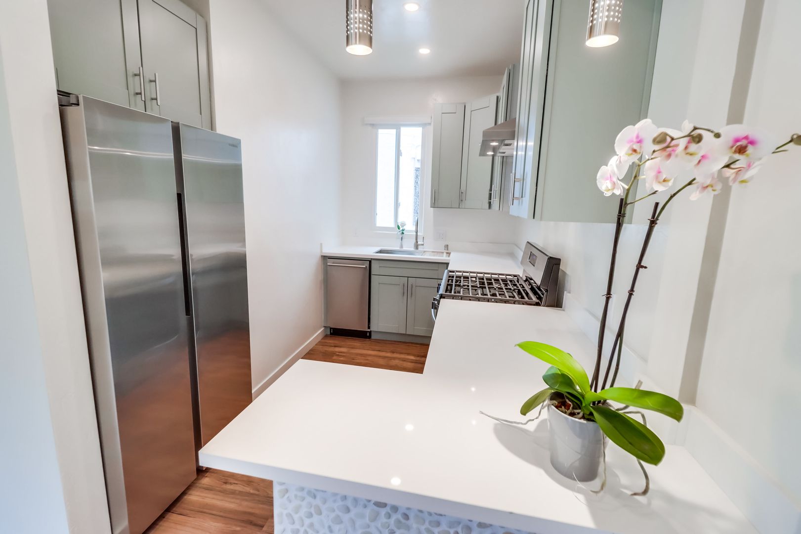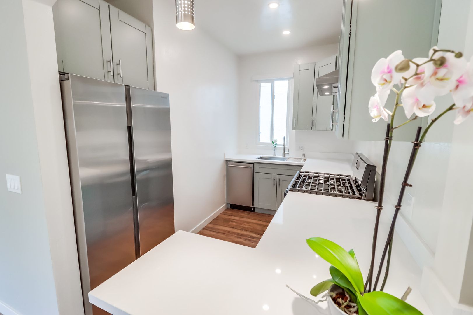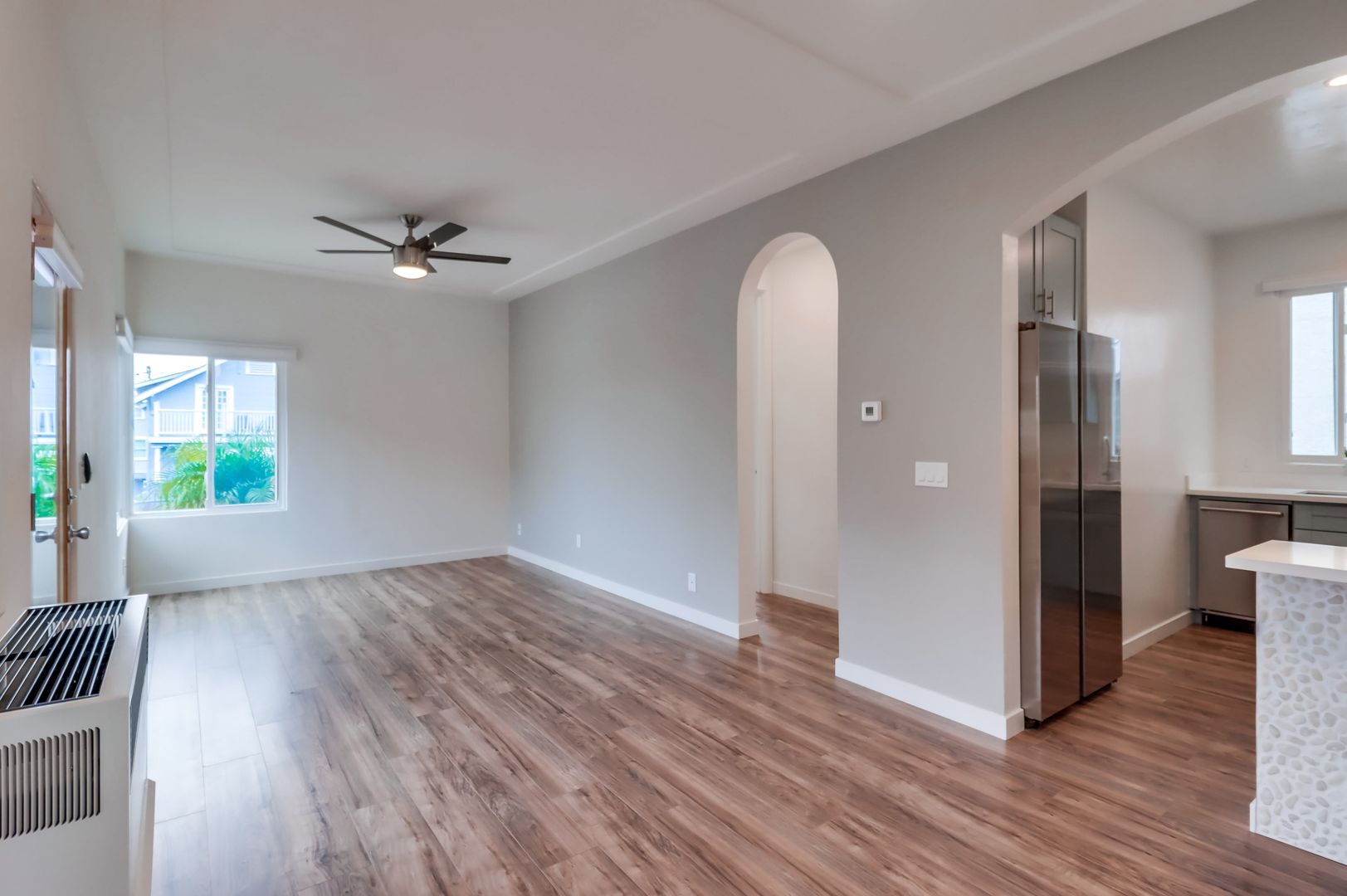 Banker’s Hill $2245 Fully remodeled One bedroom with included offstreet parking space in Bankers Hill -Park West near Little Italy. Unit has a new designer interior including upgraded wood flooring, custom cabinets, white quartz counters, stainless steel fridge, dishwasher, range and hood, river rock accent bar, pendant and recessed lighting new ceiling fans, designer bath with walk in shower and imported glass tile. Property has Onsite laundry. Owner pays for gardener and trash. Located in the perfect neighborhood, walk to the Little Italy Farmers Market on Saturday mornings, or stroll to one of the many fine restaurants and cafes in the area. Close to downtown and the 5 freeway, it is the perfect urban retreat. Indoor Cat OK. NO Dogs. Available for March move in with lease through June 15th 2027. Rent plus $1800 moves you in. Please watch the video walkthrough and drive by 2449 Union Street (near Laurel) but please do not disturb current tenants. Call Crown Management Bkr (858) 454-1900.