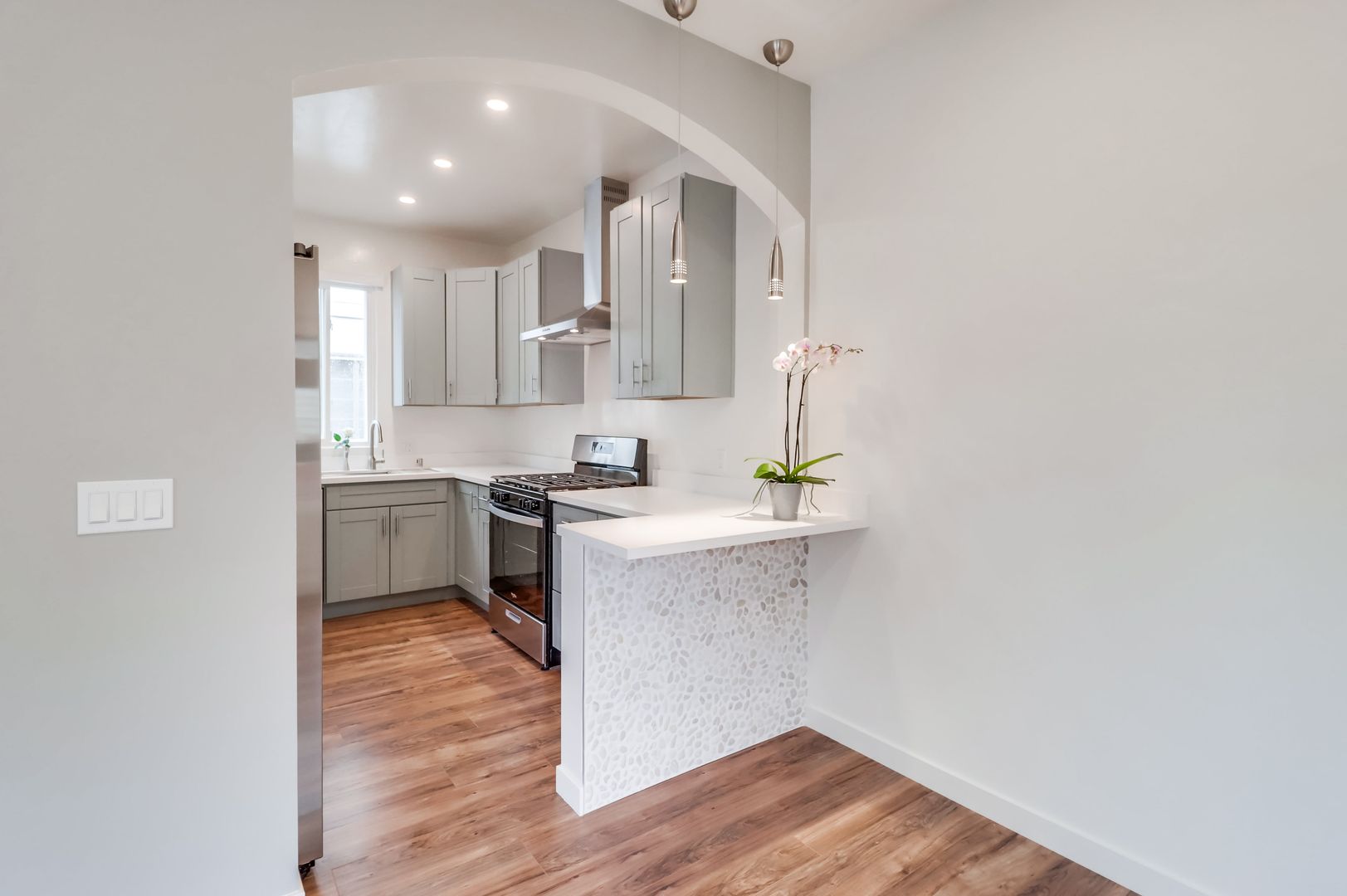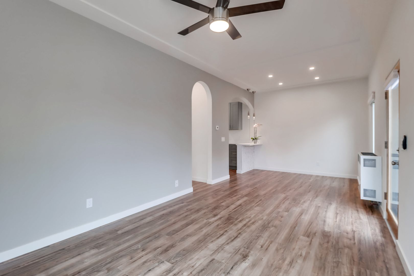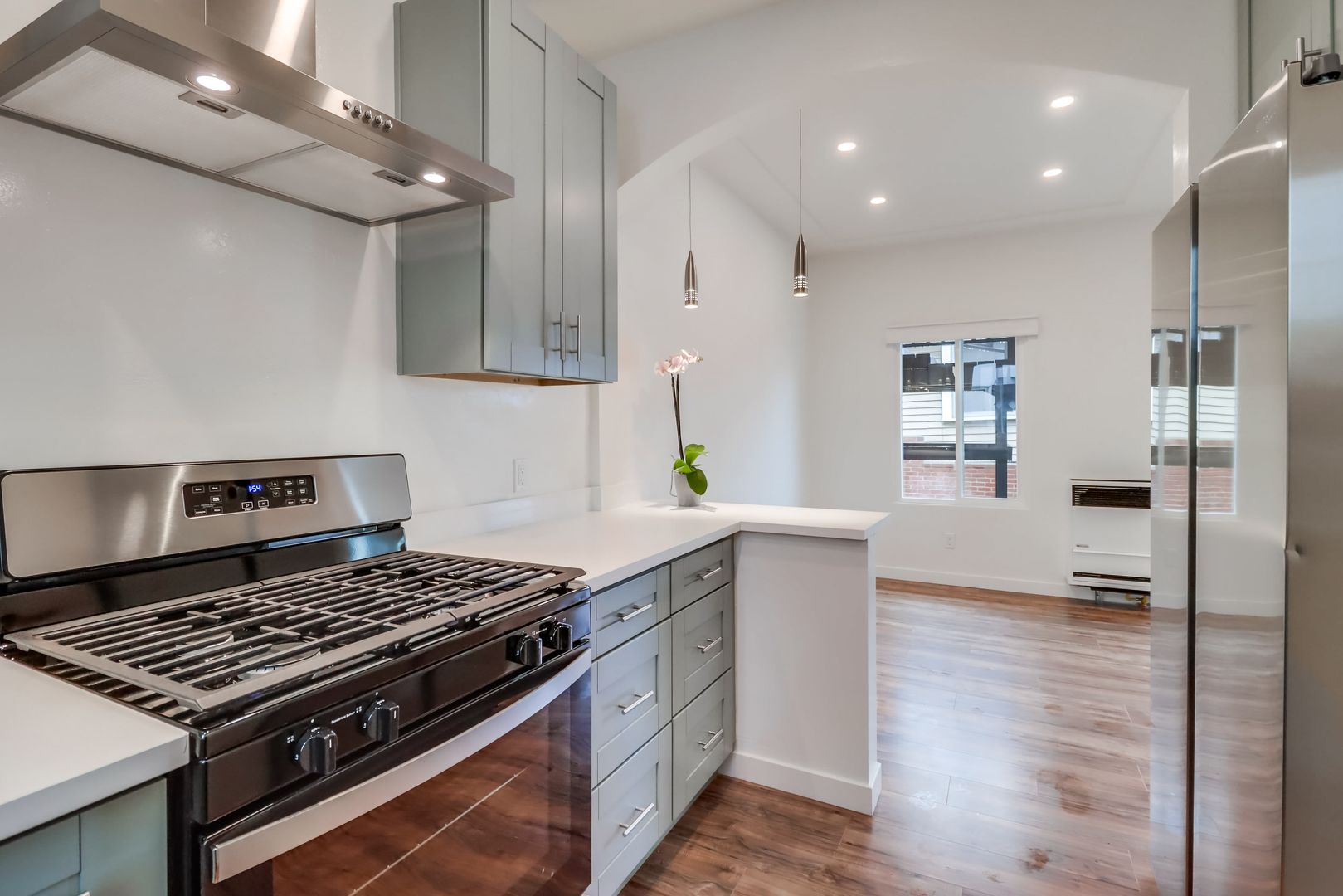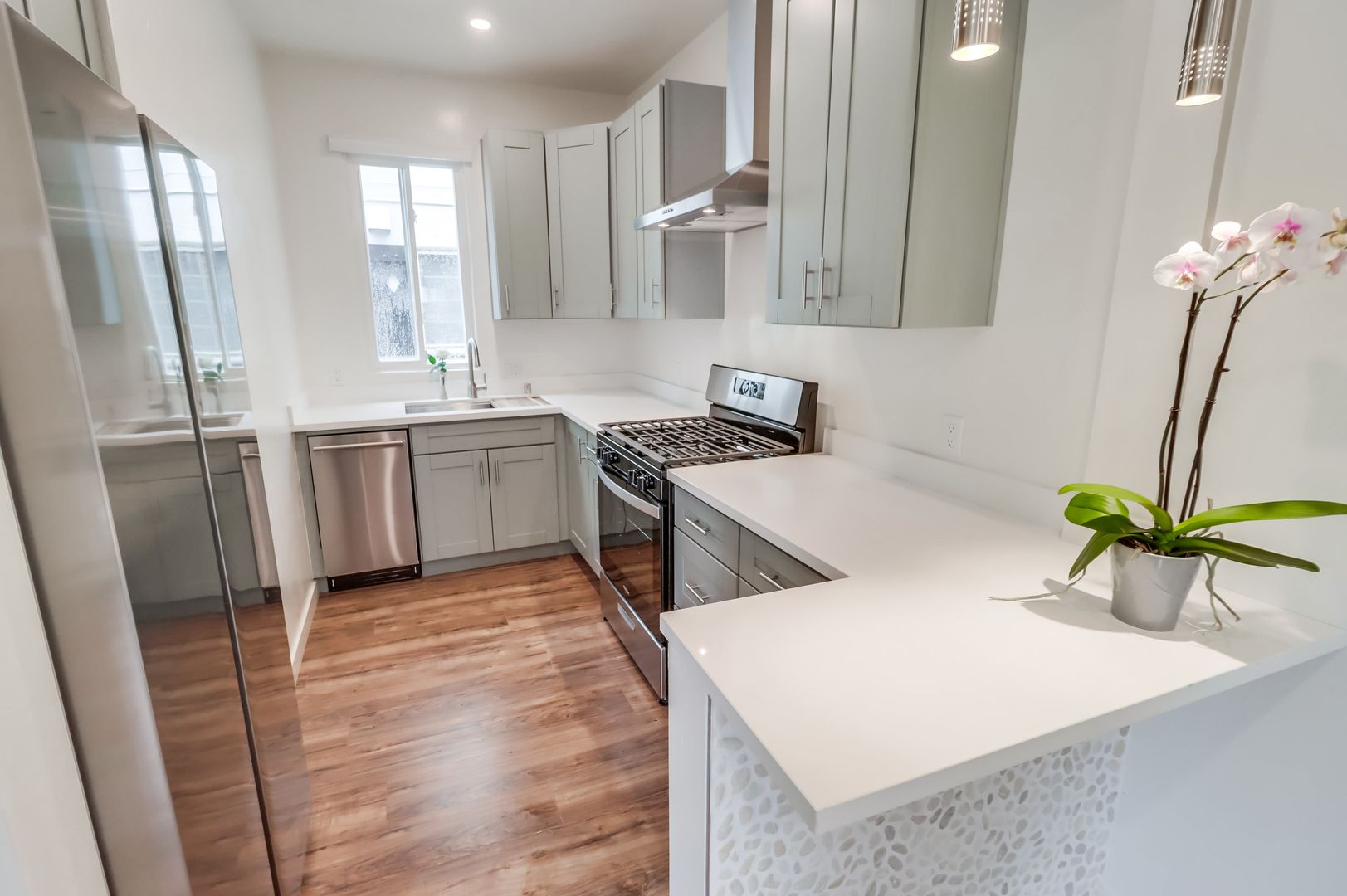 Banker’s Hill $2245 Fully remodeled One bedroom with included offstreet parking space in Bankers Hill -Park West near Little Italy. Unit has a new designer interior including upgraded wood flooring, custom cabinets, white quartz counters, stainless steel fridge, dishwasher, range and hood, river rock accent bar, pendant and recessed lighting new ceiling fans, designer bath with walk in shower and imported glass tile. Property has Onsite laundry. Owner pays for gardener and trash. Located in the perfect neighborhood, walk to the Little Italy Farmers Market on Saturday mornings, or stroll to one of the many fine restaurants and cafes in the area. Close to downtown and the 5 freeway, it is the perfect urban retreat. Indoor Cat OK. NO Dogs. Available for March move in with lease through June 15th 2027. Rent plus $1800 moves you in. Please watch the video walkthrough and drive by 2449 Union Street (near Laurel) but please do not disturb current tenants. Call Crown Management Bkr (858) 454-1900.
