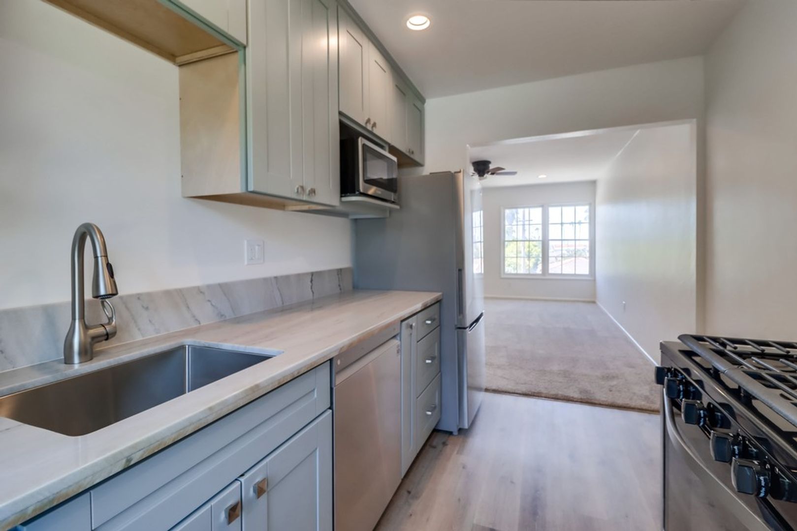 La Jolla-Birdrock $3,695. Newly remodeled 2 Bedroom near Ocean in coveted Birdrock La Jolla neighborhood. Rare opportunity for a year round rental in one of La Jolla's most desirable areas. Everything has been fully renovated. Second story unit features an upgraded tiled bath--pergo wood floors in kitchen, upgraded fixtures, custom cabinets, quartzite counter tops and stainless steel stove, fridge, microwave and dishwasher. Also has newly installed ceiling fans, new window shades and new designer carpet in living room and bedrooms. 2 Bedroom 1 Bath unit is bright and sunny with lots of natural light. A large, assigned offstreet parking space is included. Owner pays for gardener and trash. Onsite laundry. Located on a quiet cul-de-sac just steps from the Birdrock Bike Path, Big Rock Reef, and La Jolla Hermosa Park. Rent plus $2600 moves you in. Quiet, well maintained property. Available for November move-in. Please drive by 6049 La Jolla Hermosa and then call Crown Management Bkr (858) 454-1900 No Cosigns