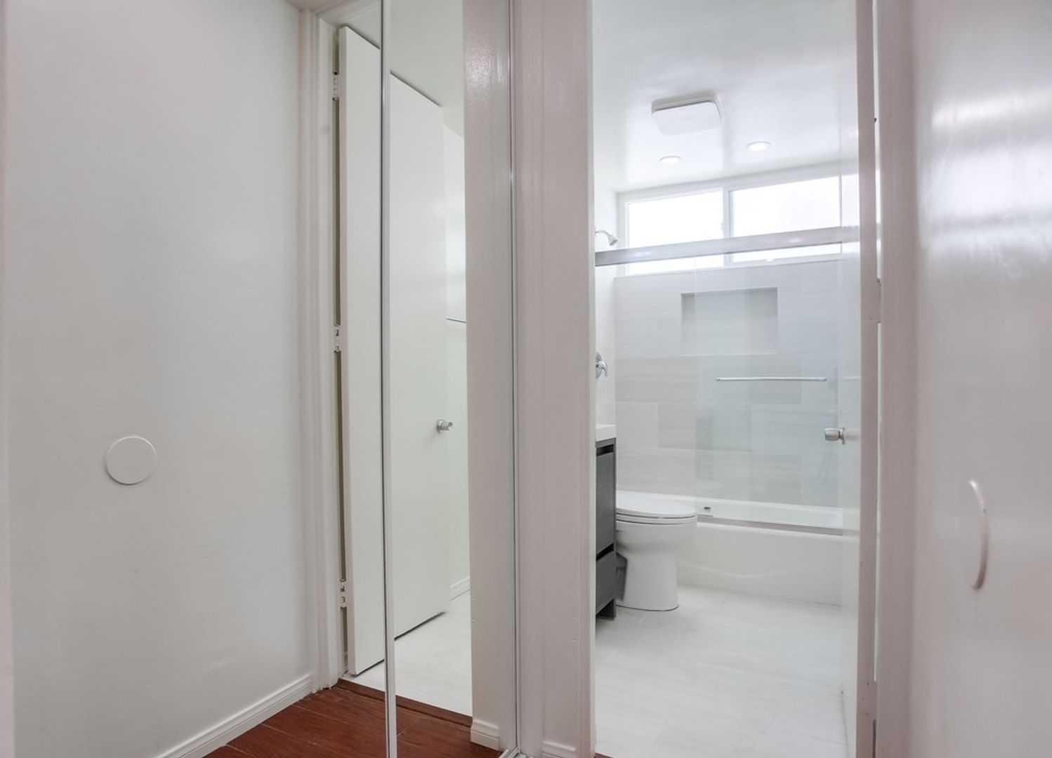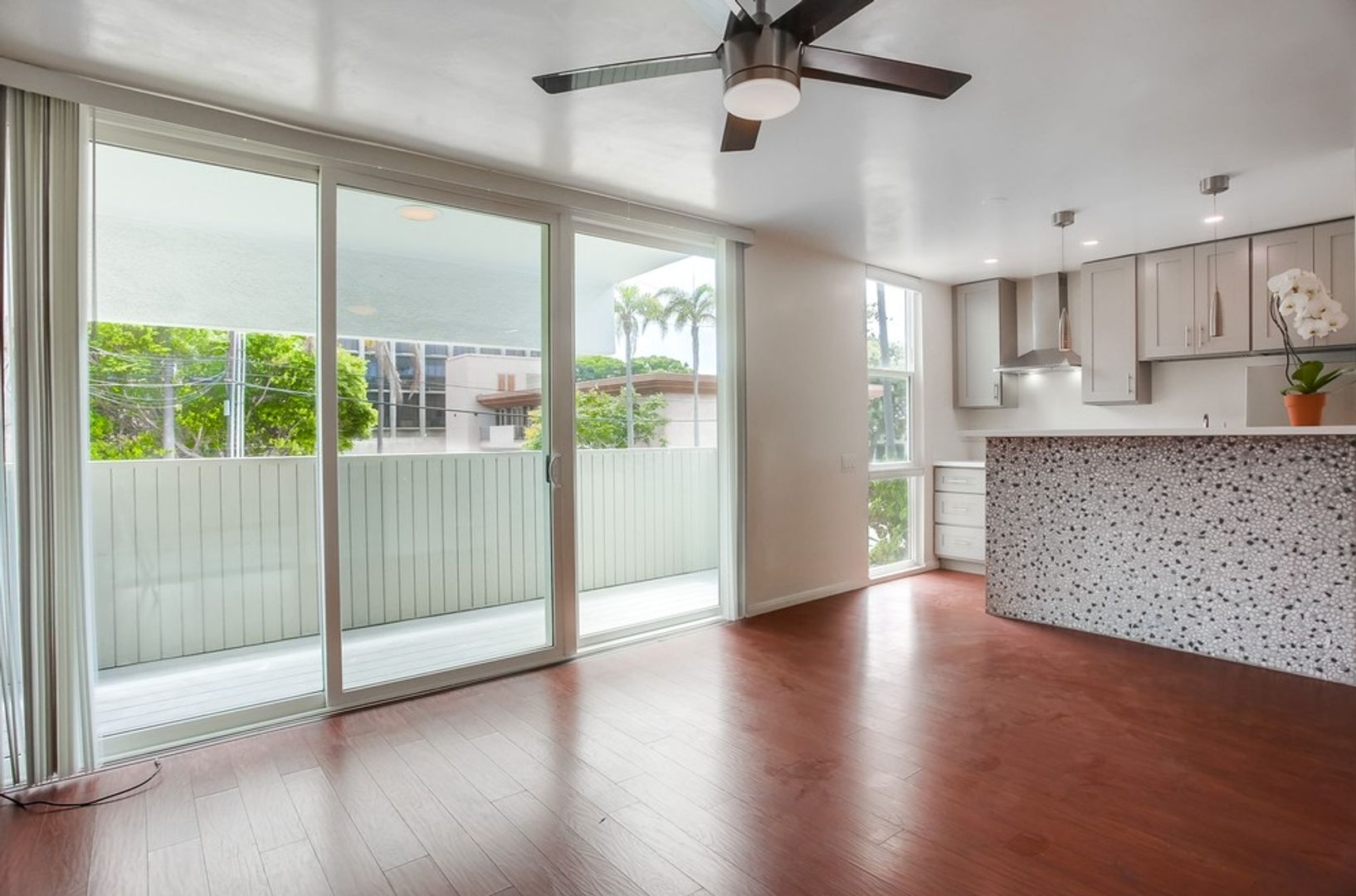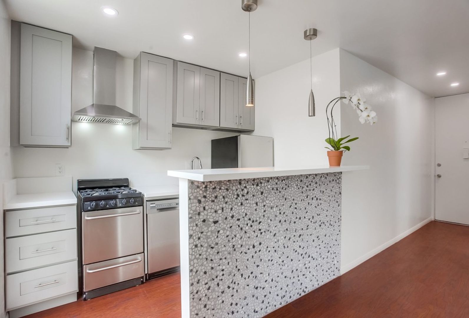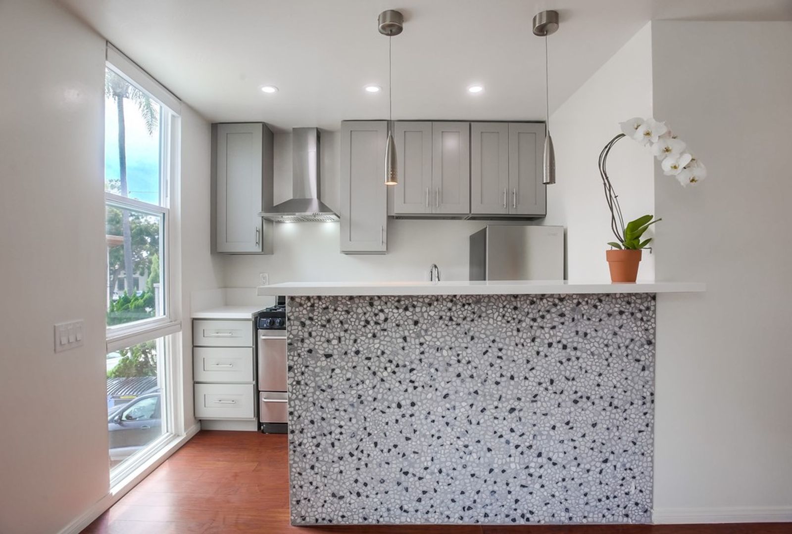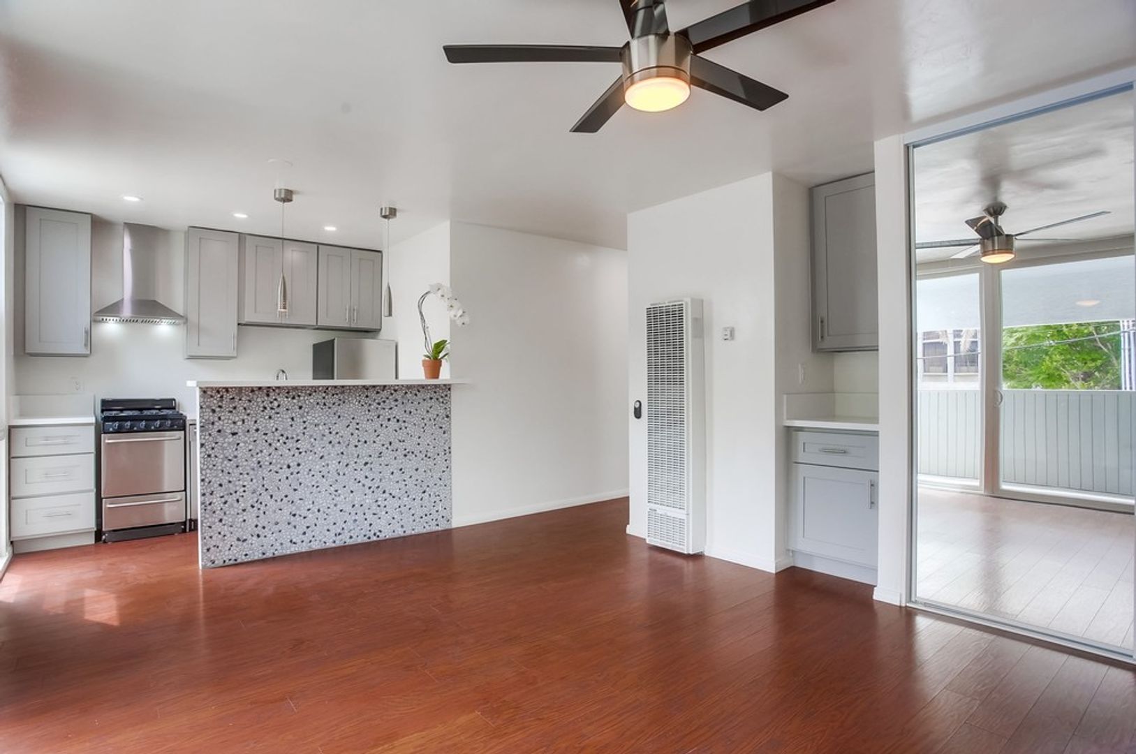 La Jolla Cove $2195 Immaculate, newly remodeled studio in prime location in the village steps to La Jolla Cove. Second story unit has private balcony deck, new designer kitchen with stainless steel stove, fridge, dishwasher, custom cabinets and white quartz counters. Brand new bath with all new fixtures and imported glass tile accent wall. Amenities include pendant and recessed lighting, new ceiling fans, new paint, and our signature river rock accent bar. Also has dual pane sound reducing windows. On site laundry. Owner pays gardener and trash. Will consider indoor cat for responsible tenant with excellent references. No dogs. Rent plus $1200 moves you in. Please drive by 1220 Cave Street #6 then call Crown Management Bkr 454-1900