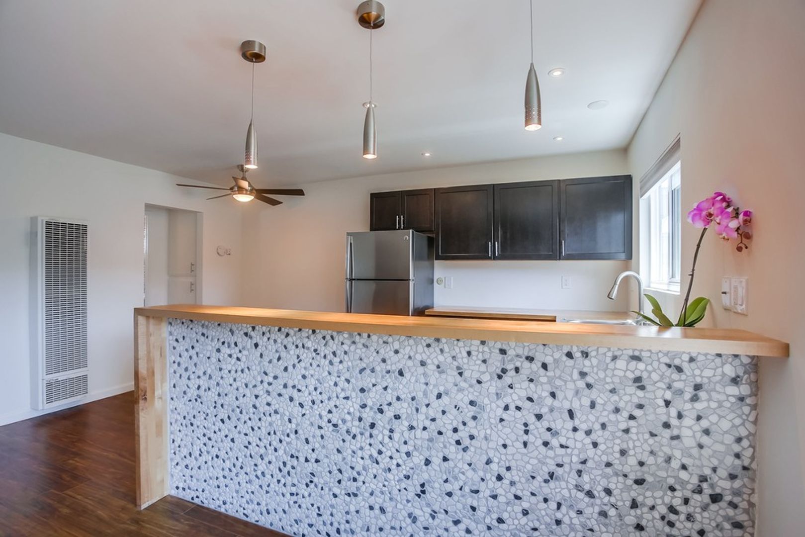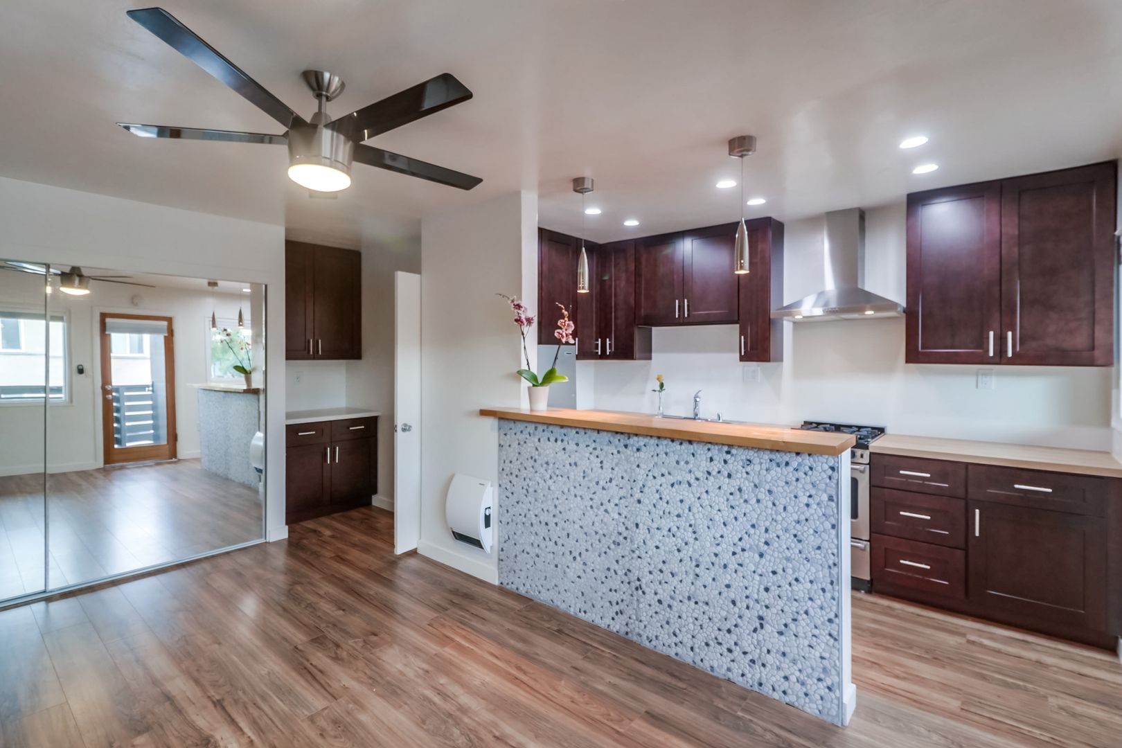 We promise that our units will be amazing :) Most of our units have all new interiors with designer upgrades including custom cabinets, new stainless steel, energy star rated appliances, tiled baths with imported glass accent tile, Toto toilets, new pendant and recessed lighting, new modern ceiling fans, pergo wood flooring, butcher block or white quartz counters, new wooden slat paneling, our signature river-rock accent bar, and more. Most units come with assigned off-street parking spaces and onsite laundry.